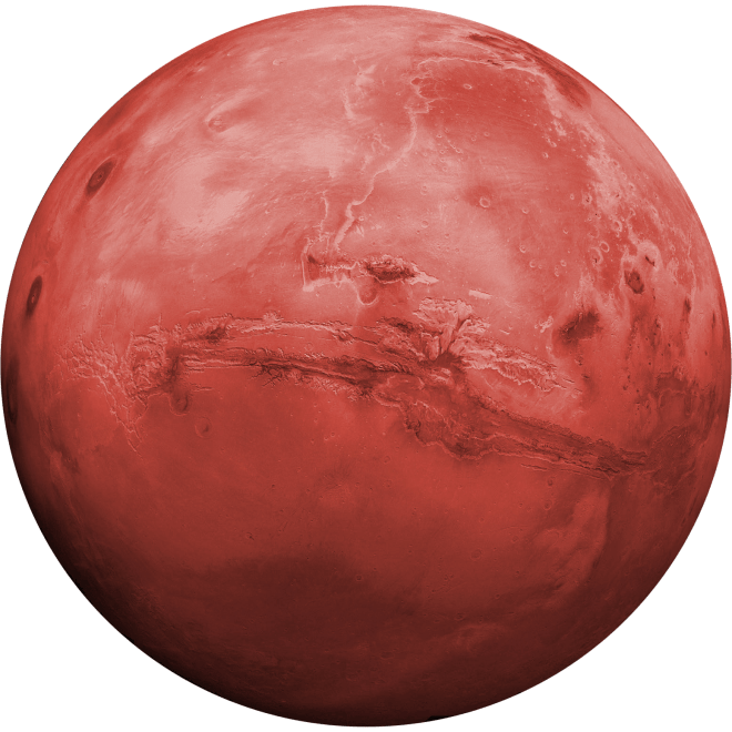 O quarto planeta rochoso que nosso Starman está a caminho, na mitologia, tinha reputação de violento e não era bem quisto pelos outros deuses! Para os habitantes da Terra ele desperta muito interesse por se tratar de um planeta que no passado pode ter tido um ambiente favorável à vida, mas quando nosso herói sobrevoar sua superfície verá um lugar desolado e sem resquício de qualquer forma biológica, existindo somente marcas de antigos leitos de rios e outras características de um passado áureo que não existe mais. Ao se deparar com o planeta vermelho o Starman encontrará um lugar inóspito e terrivelmente difícil de viver. Há planos para que no futuro o homem possa colonizar o mundo do deus da guerra, porém muitos obstáculos terão que ser superados, pois as dificuldades serão enormes. O Nosso herói provavelmente não pousará em Marte, porém verá e sentirá de perto toda sua falta de hospitalidade e sua grande “fúria”.